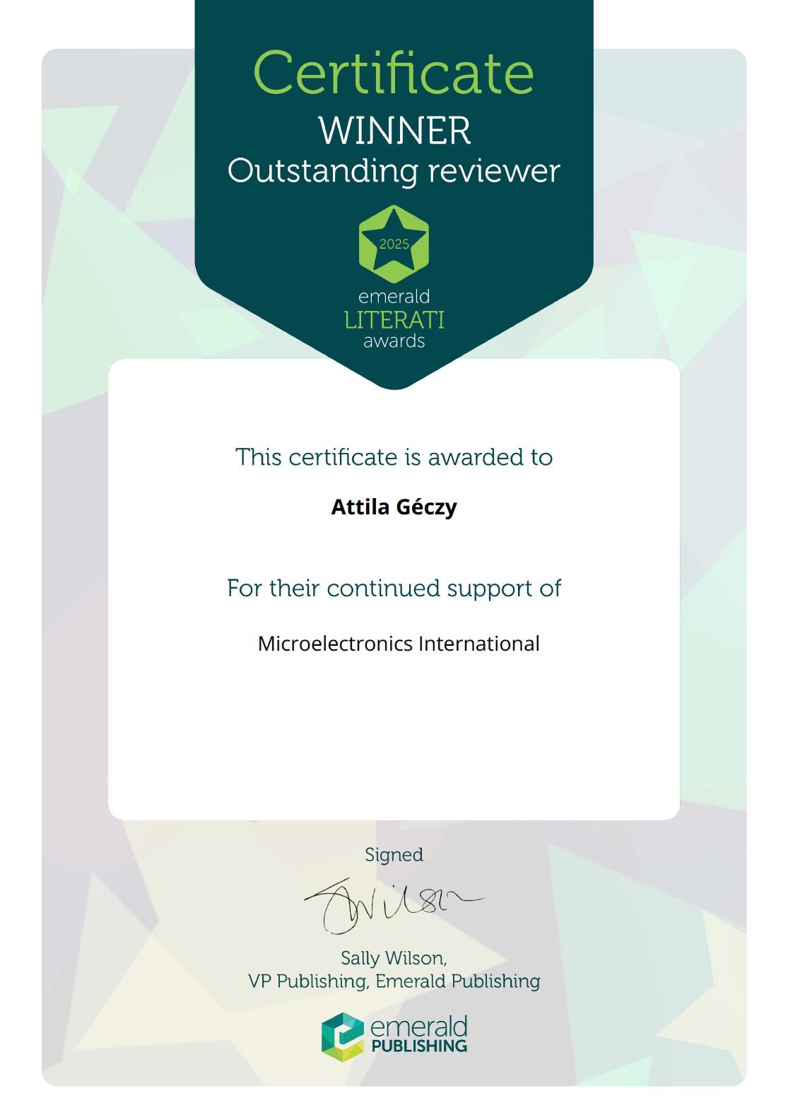 Géczy Attila | Outstanding Reviewer