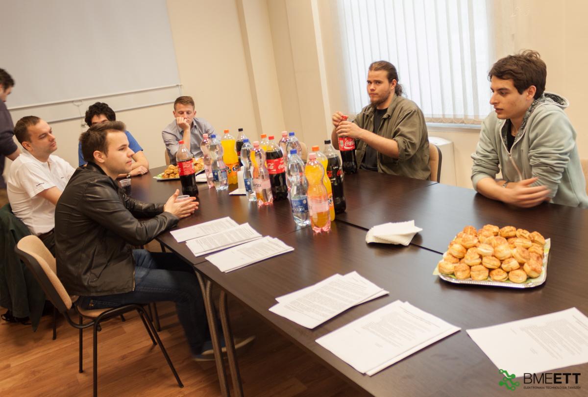 A közel harminc elfogadott jelentkező körülbelül fél egykor kezdte a regisztrációját a V1.004 tantermében, ahonnan aztán együtt vonult le a csapat a V1 C szárny laboratóriumába. A verseny kezdete előtt Prof. Harsányi Gábor tanszékvezető és Dr. Sántha Hunor docens (a délután házigazdája) köszöntötte az egybegyűlteket, majd a Microsolder Kft. jóvoltából Regős Péter ügyvezető, IPC mestertréner tartott egy rövid gyorstalpalót a kézi forrasztás szakmai alapjairól.